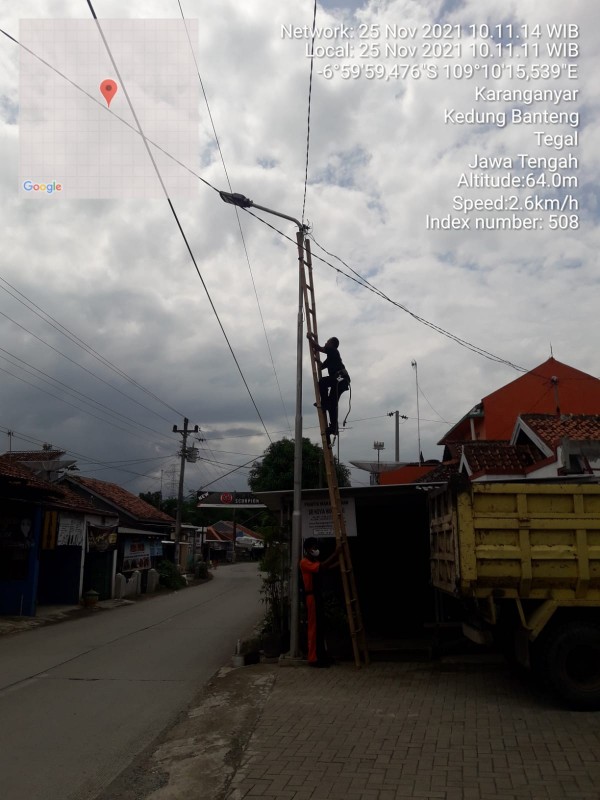 | Isi Laporan | : | Mhn maaf sblmnya Menginfokan untuk pju di dpn masjid al furqon karanganyar kedung banteng tegal yg baru pasang 10 hari yg lalu lampu nya 1 mati Mhn untuk perbaikan pak |