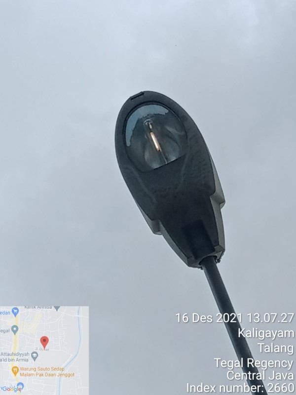 | Isi Laporan | : | Ijin melaporLPJU mati.. lokasi di depan galon air minum..AM water..giren ..talang.. |