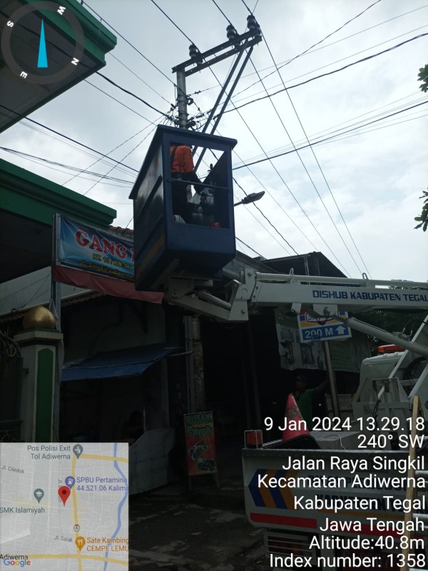 | Isi Laporan | : | PJU depan kantor kecamatan Adiwerna ada 2 ttik lampu tidak menyala. tepatnya di depan dan belakang masjid masing2 1 titik. Mohon perbaikannya. |