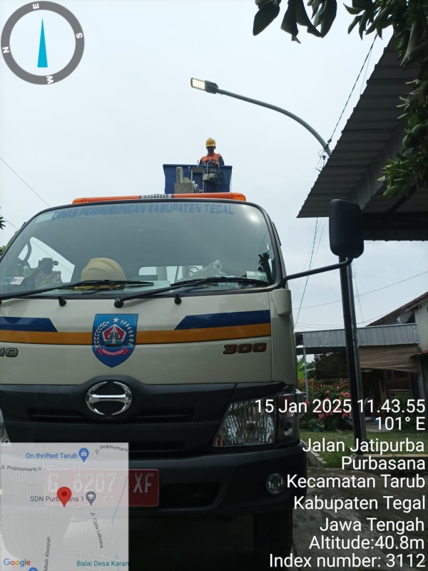 | Isi Laporan | : | Halo selamat siang, saya Triana mau lapor terkait 2 pju yang mati di ruas Jl. Jatipurba Desa Purbasana Kec.Tarub Kab.Tegal pak. |